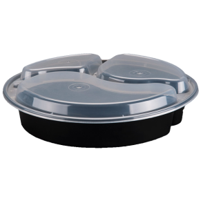 33 oz Round, 3 Comp Black Meal Prep