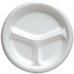3 Compartment White Foam Plates, 10 inch